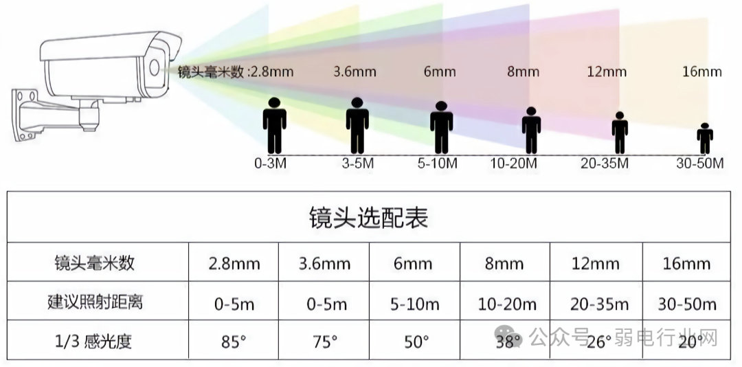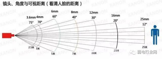 2、视角在60度以上,用于5*5米左右场所,可以用3.6mm,4mm。
