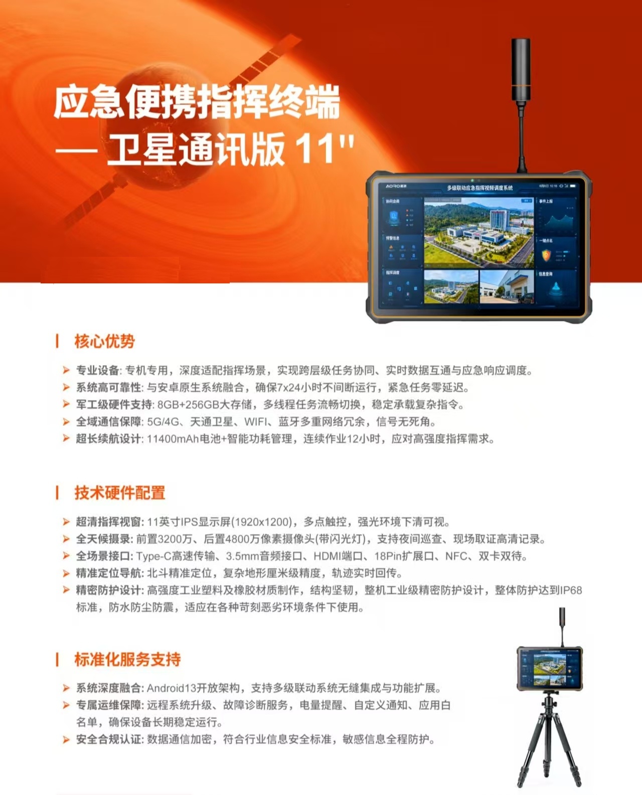 | 产品特点/Product Features | 全网通5G 5G国产芯片 鸿蒙系统-安卓13系统(二选一) 11400mAh电池 全球POC公网对讲 一键SOS求救 HDMI设备接口 |