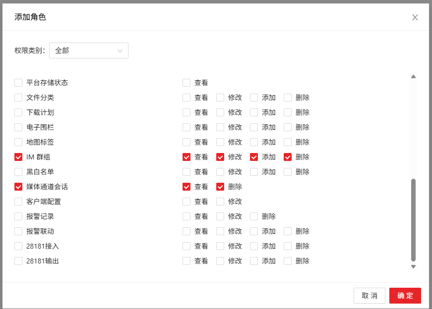 此外,最好都给他们赋予一个特定的用户角色,这个角色系统默认没有,可以在后台管理里面自行创建一个,例如起名poc,所谓角色就是几个用户权限的集合,可以让这个poc角色拥有如下权限:用户管理权限、群聊管理权限,如下图示: