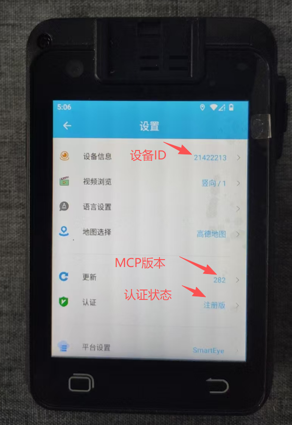 查看设备的系统固件版本信息:本地设置——系统设置——关于本机/关于手机: