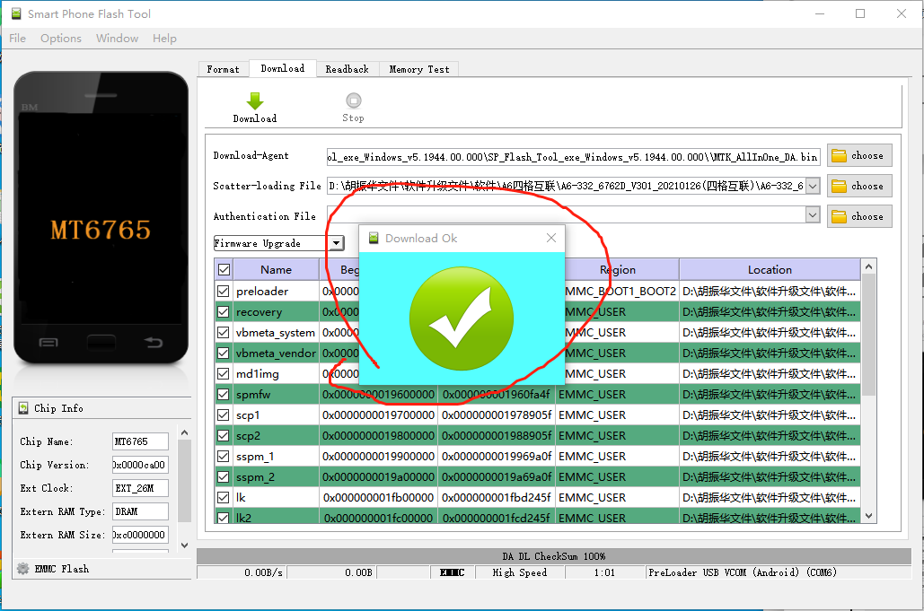 6、升级完成提示:出现打勾标识表示刷机完成,可以拔下数据线。