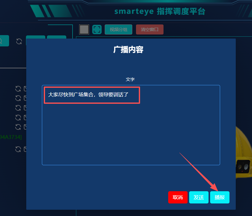 智能安全帽设置WEB平台下发文字到安全帽进行语音播报