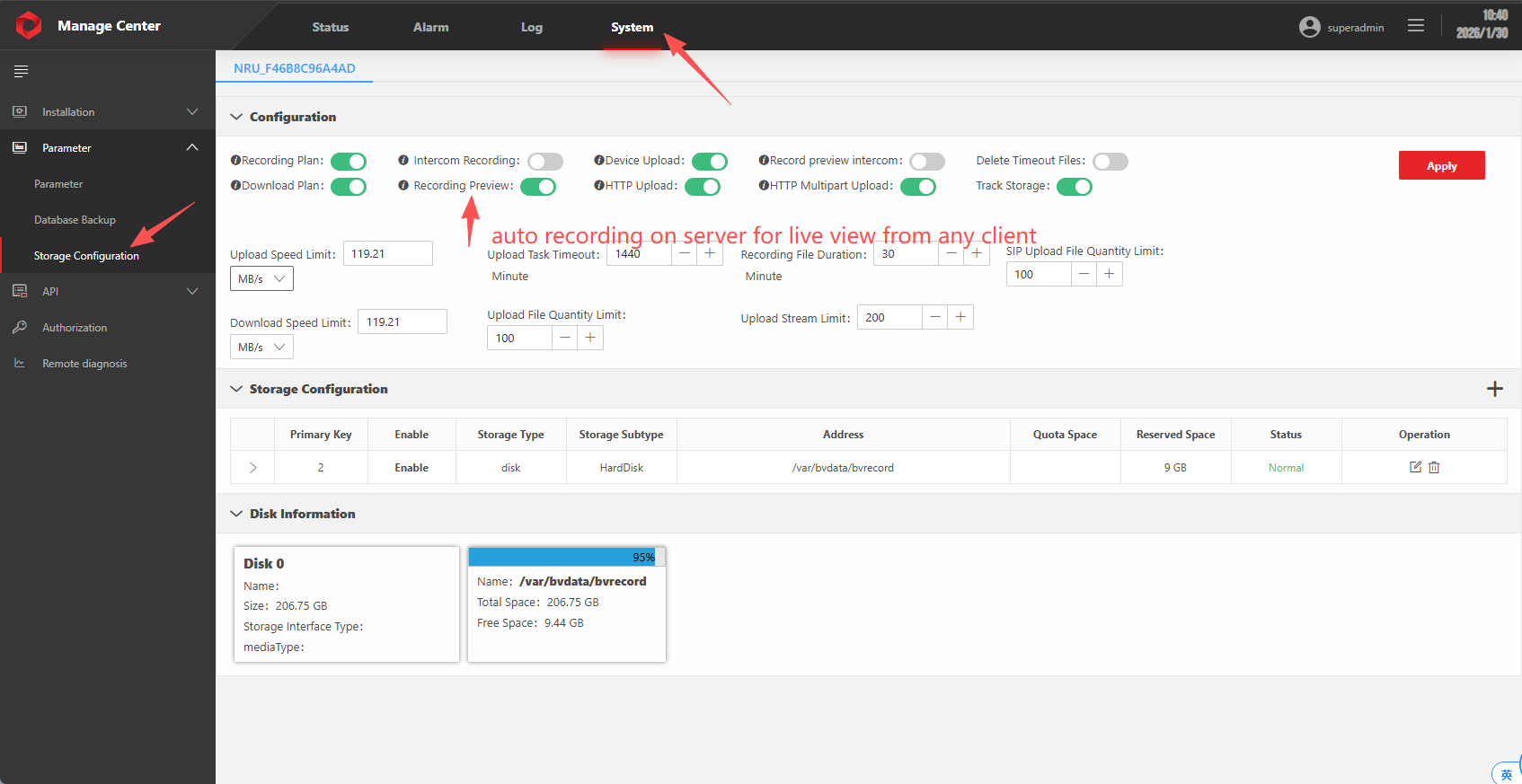 2) recording on cloud/on server side, by recording schedule or downloading schedule or automatic recording settings in NRU settings in smarteye client/Manager,can be download by smarteye client anywhere anytime