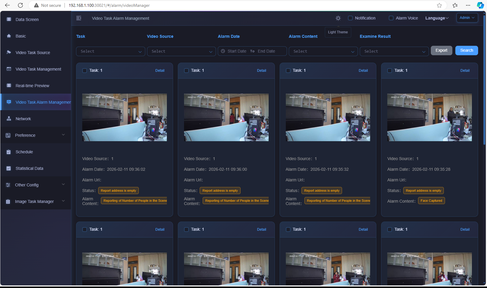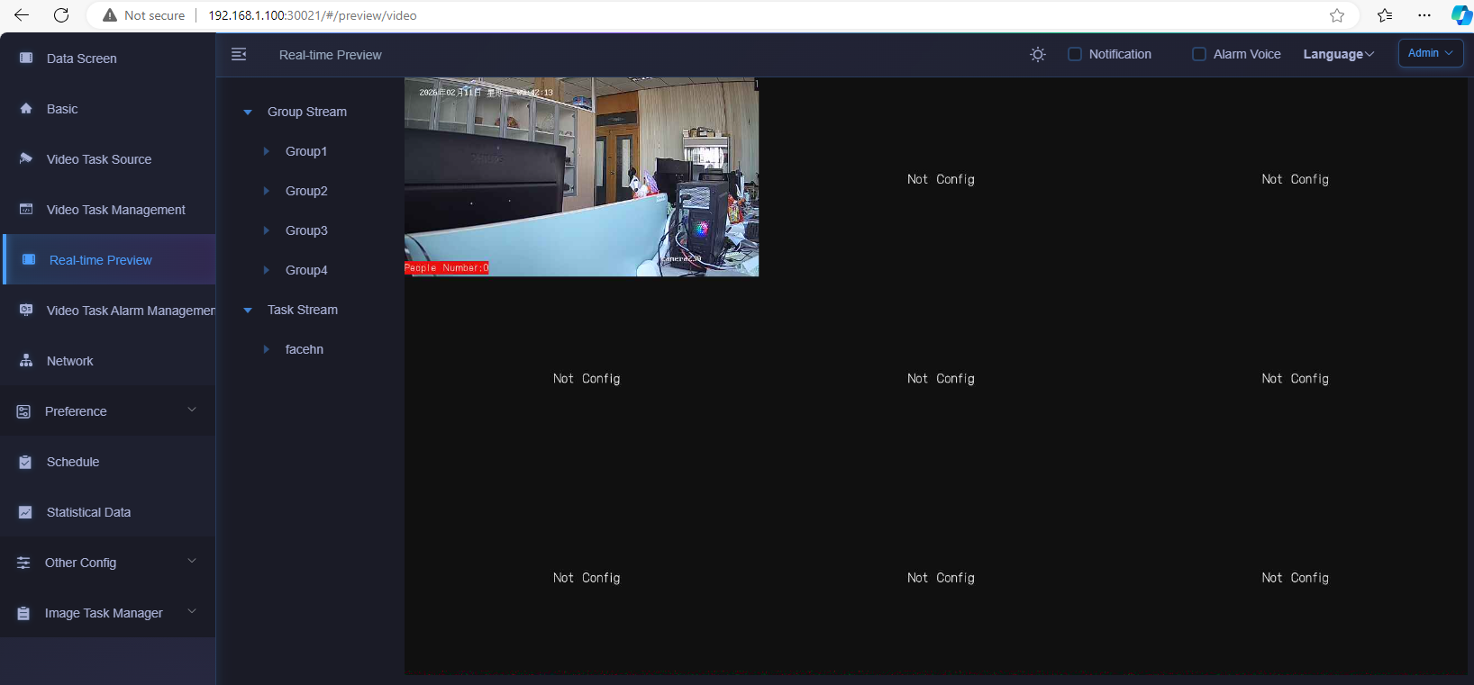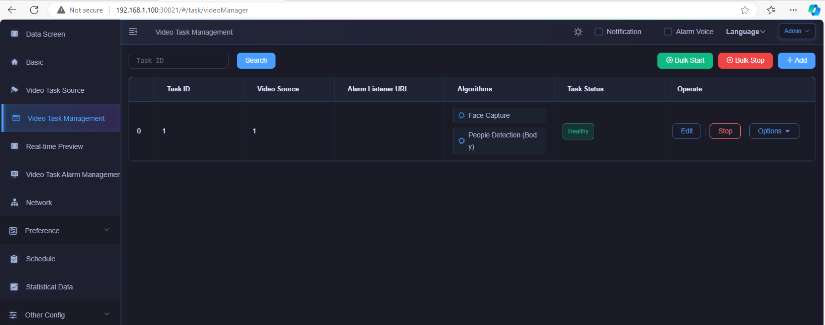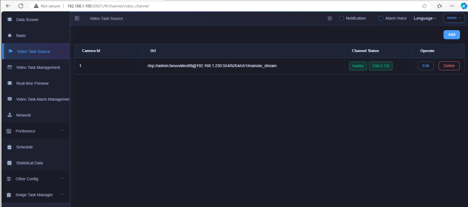 then it turns into below traditional WEB UI, typical 3parts, "add video source/RTSP + add task + check alarms"