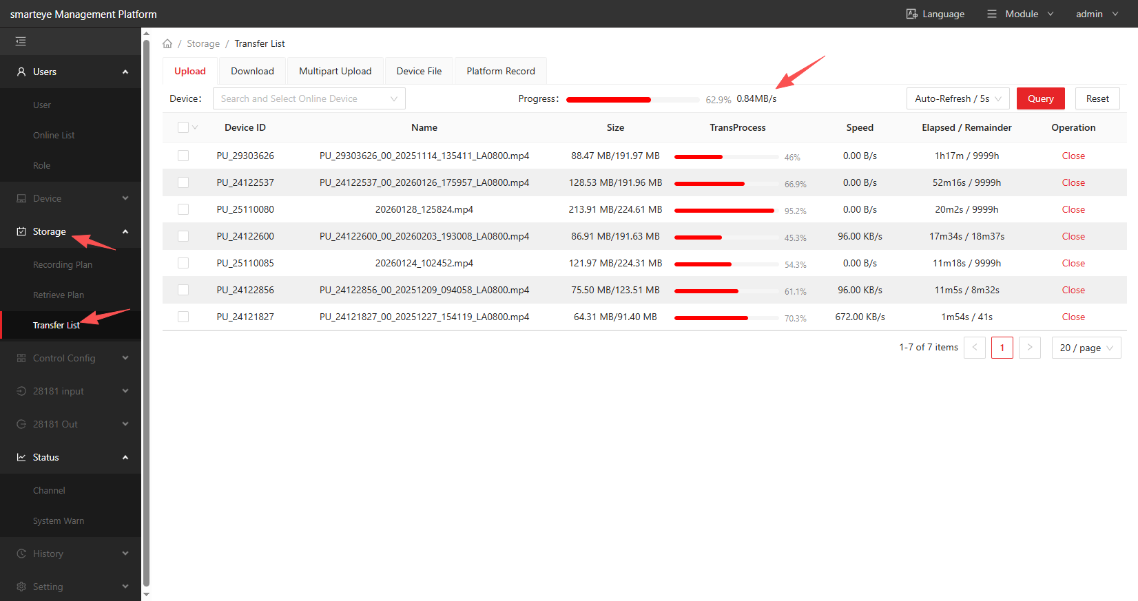 mainly, user-management/user right, remote configuration on devices, check status, logs, files, recording-schedule, downloading schedule etc.