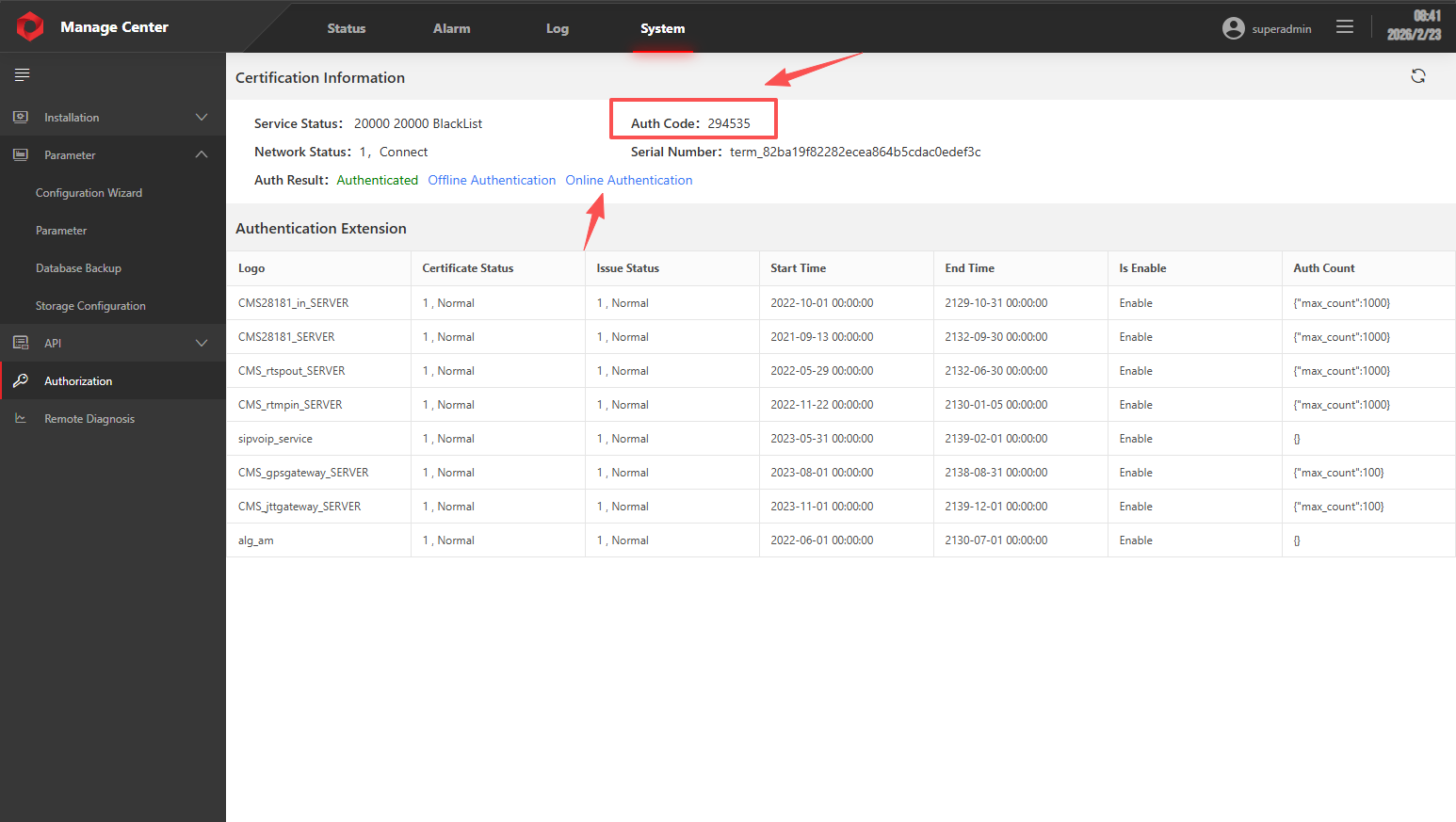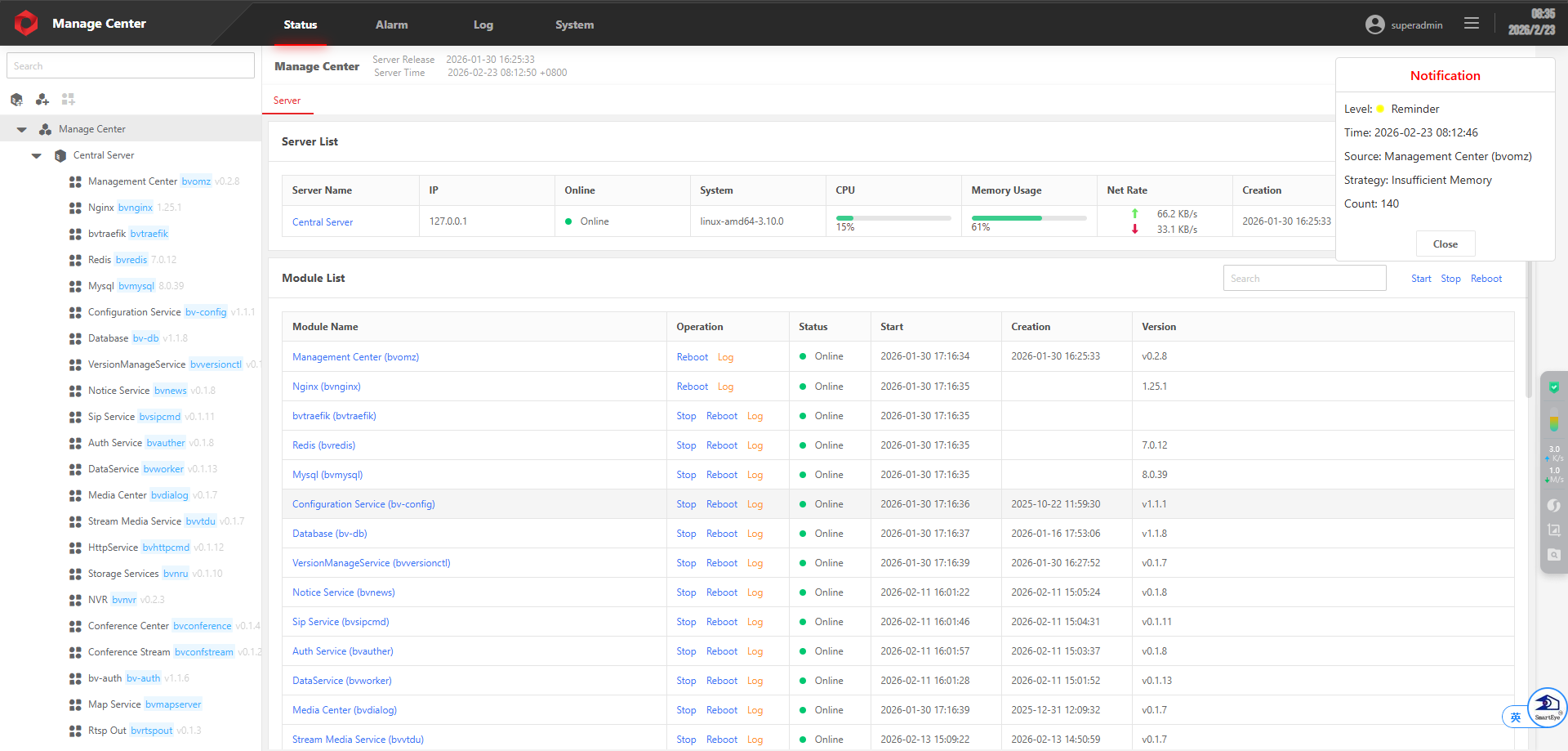 2) system-level management center, URL is https://your_server_IP:9781/center,